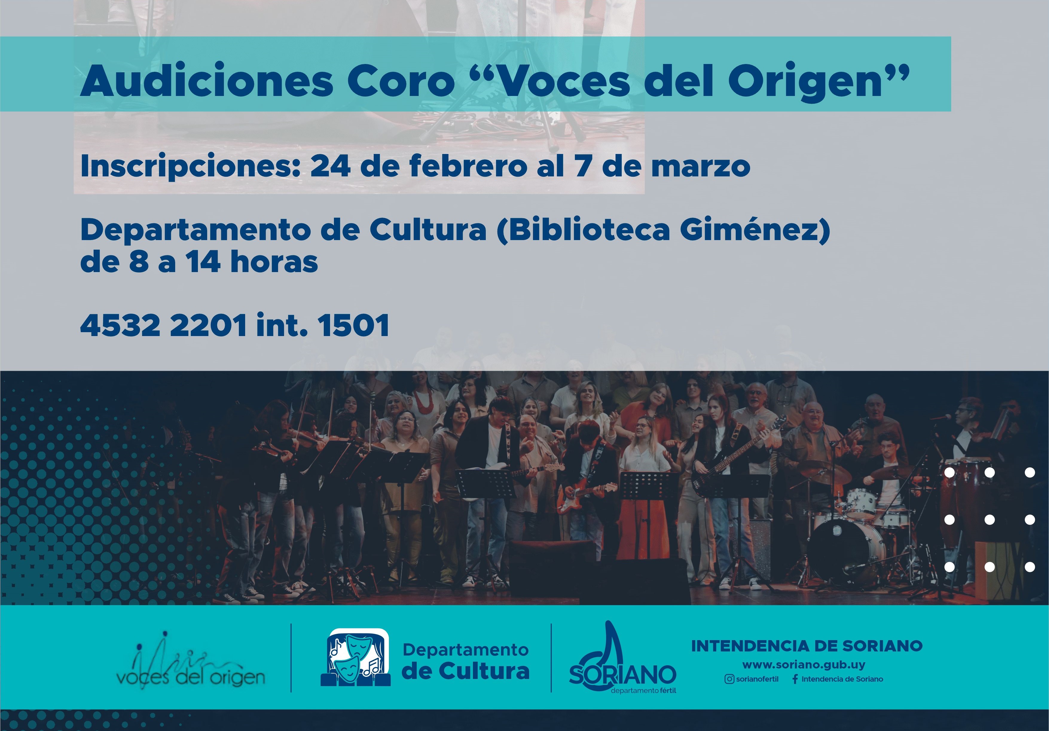 Se abre el periodo de inscripciones para interesados en integrar el coro “Voces del origen” y para clases de distintos tipos de danzas. Se trata de audiciones para el coro “Voces del origen”, para todas las cuerdas con énfasis en …..